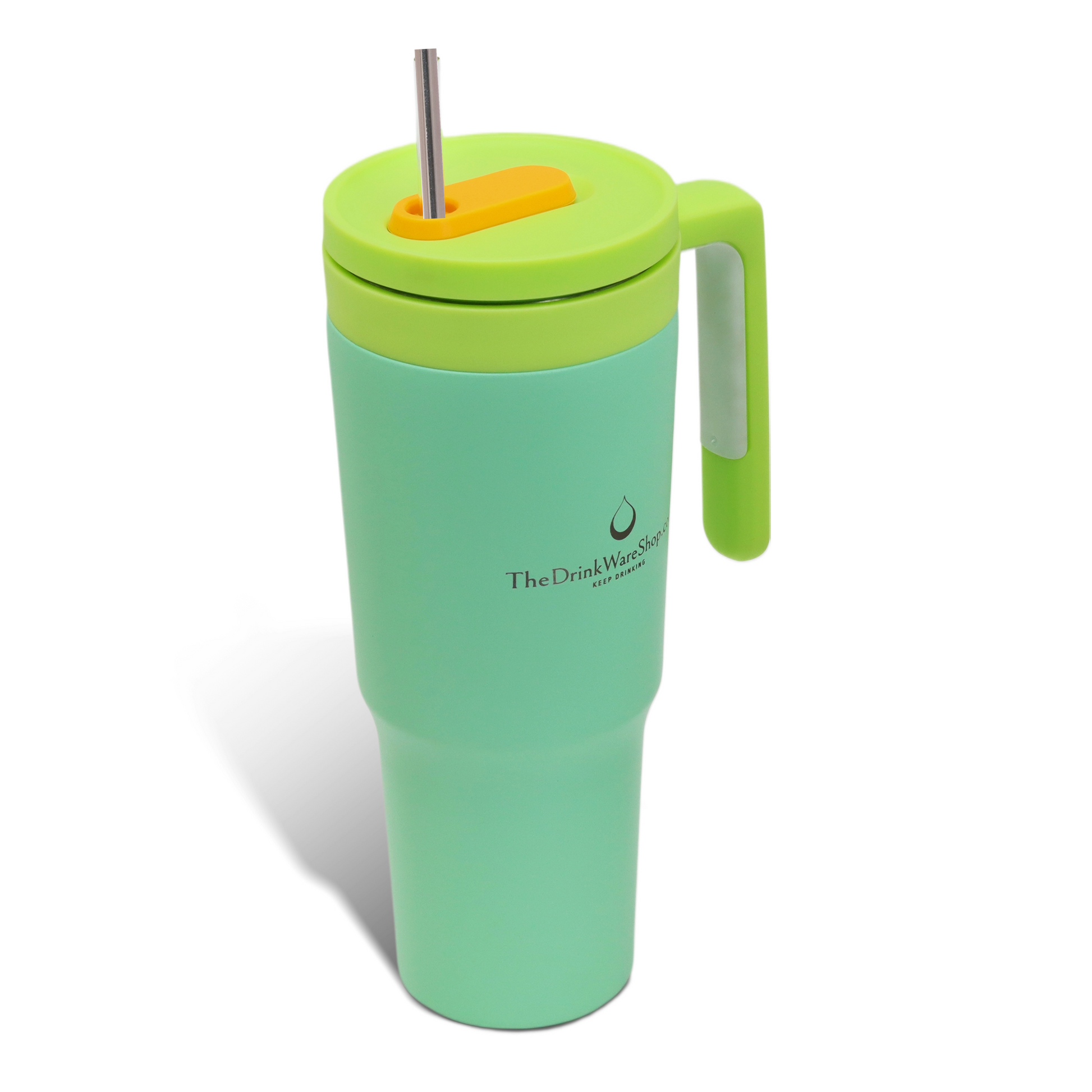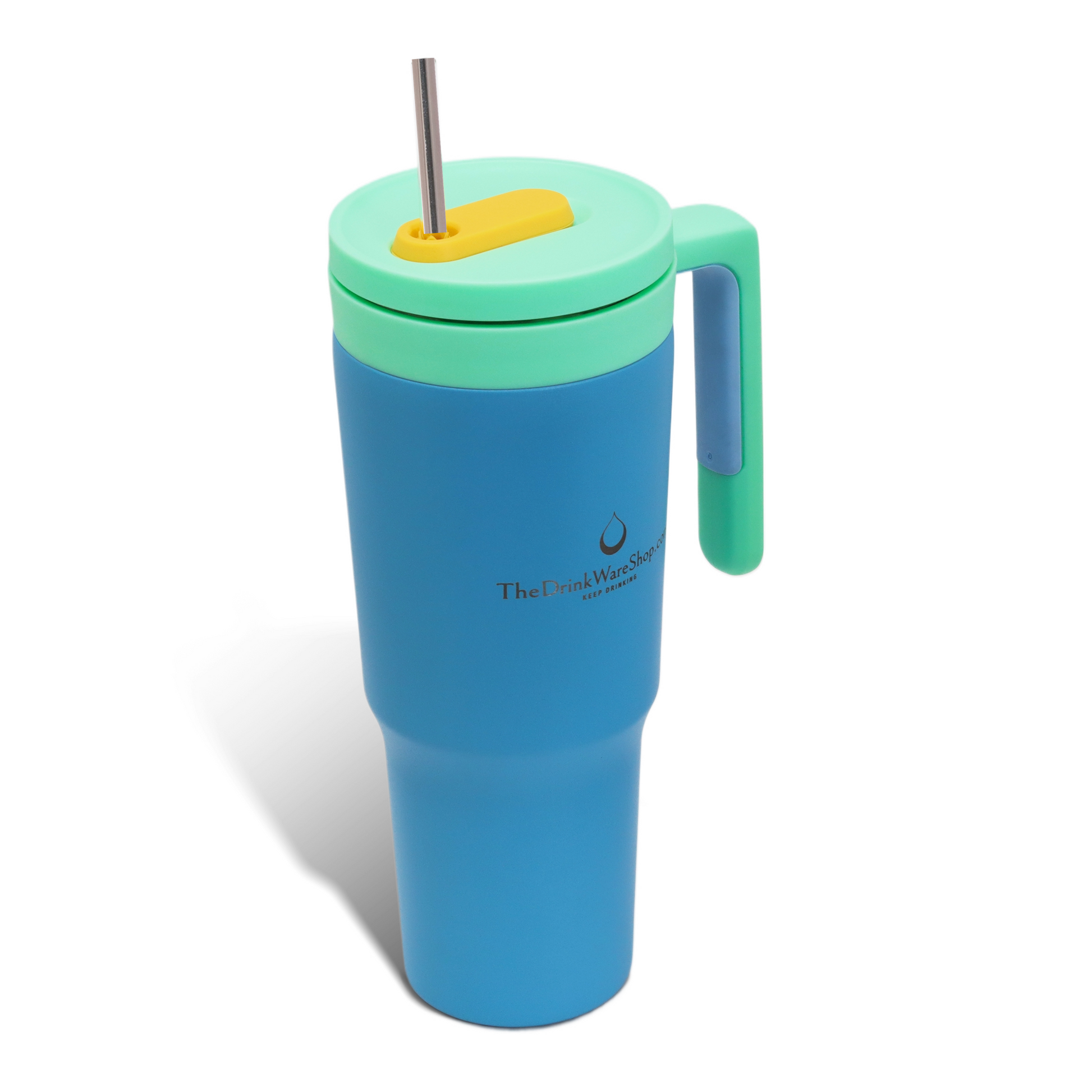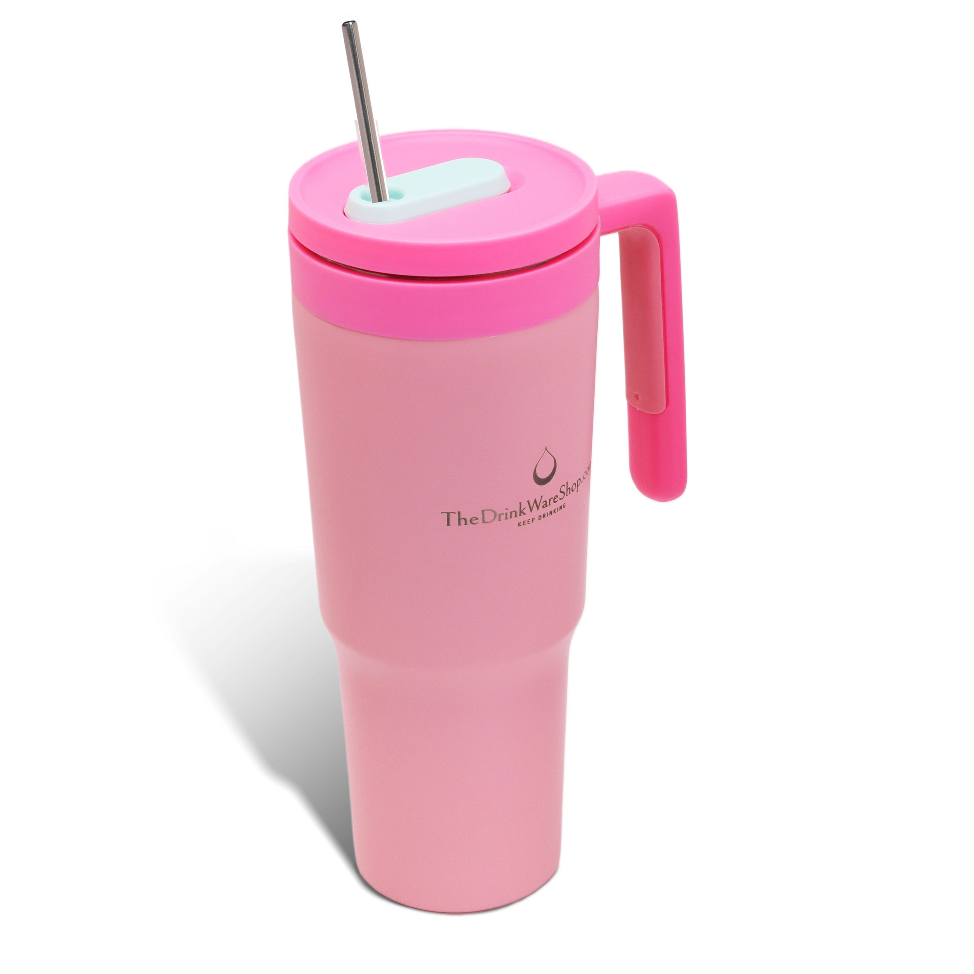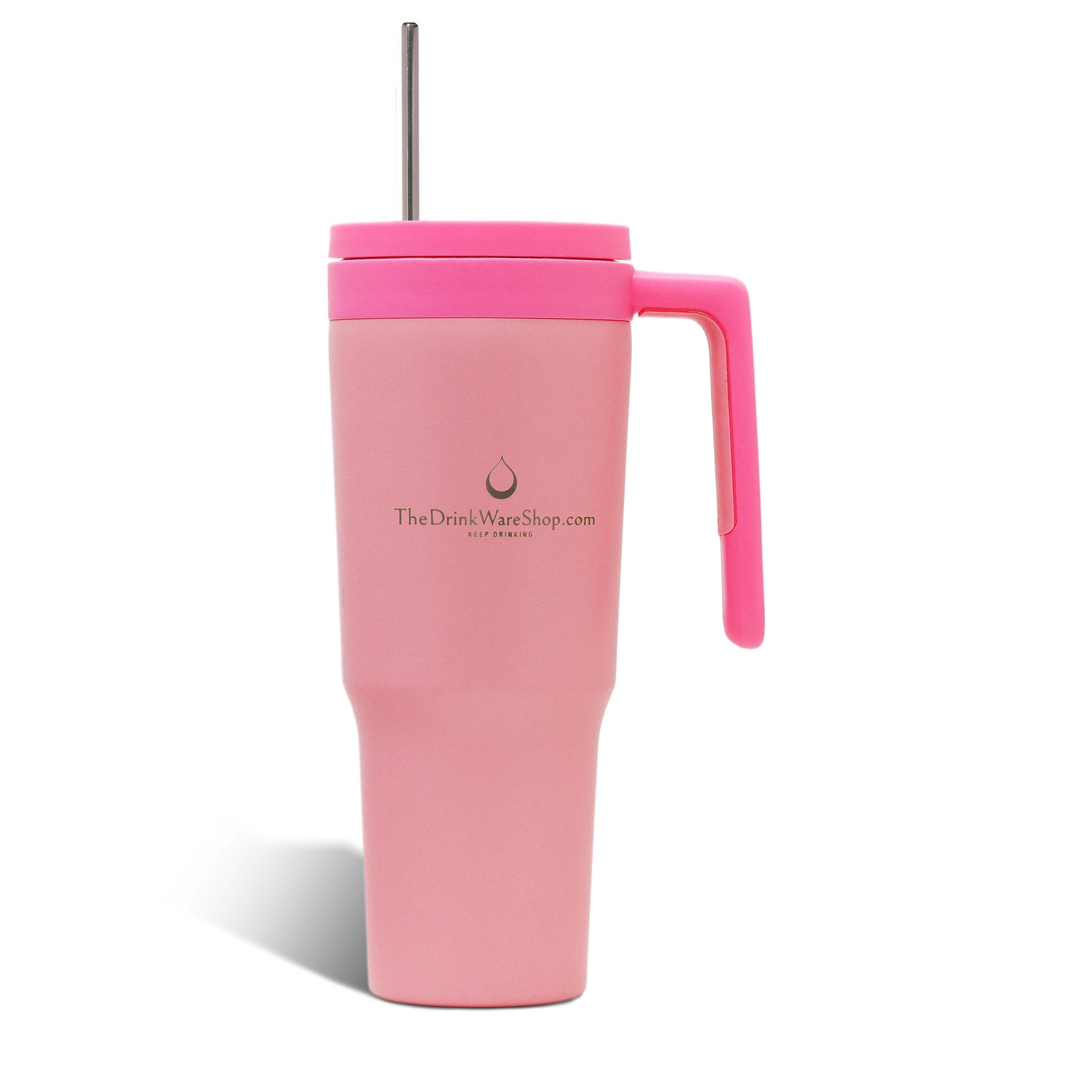 Trust us, this modern tumbler with handle, lid, and straw (plus straw cleaner!) is the perfect companion for your office, beach, or winter/summer adventures. While it's dishwasher safe, we recommend hand washing for optimal care. Get yours today and elevate your drink game to the next level!