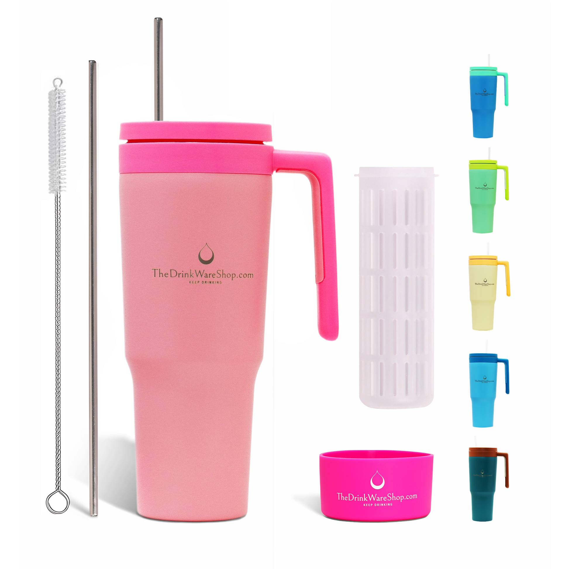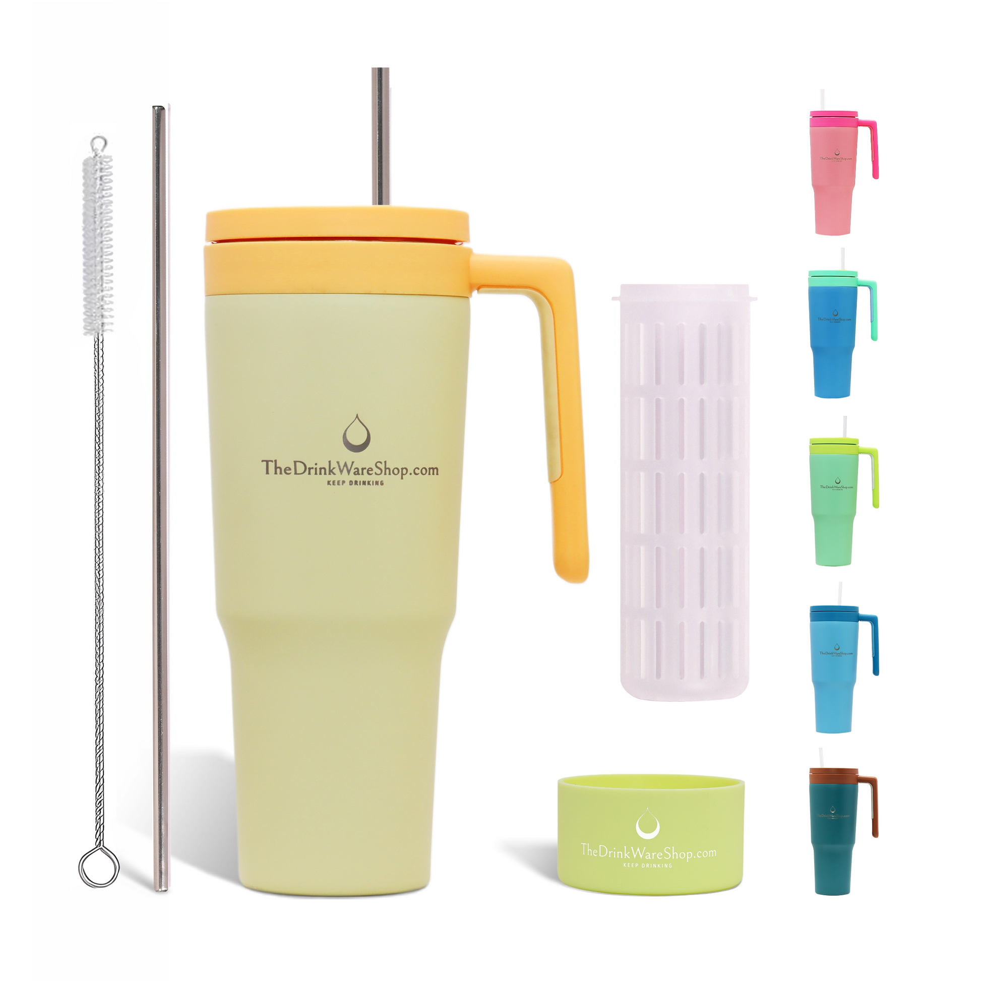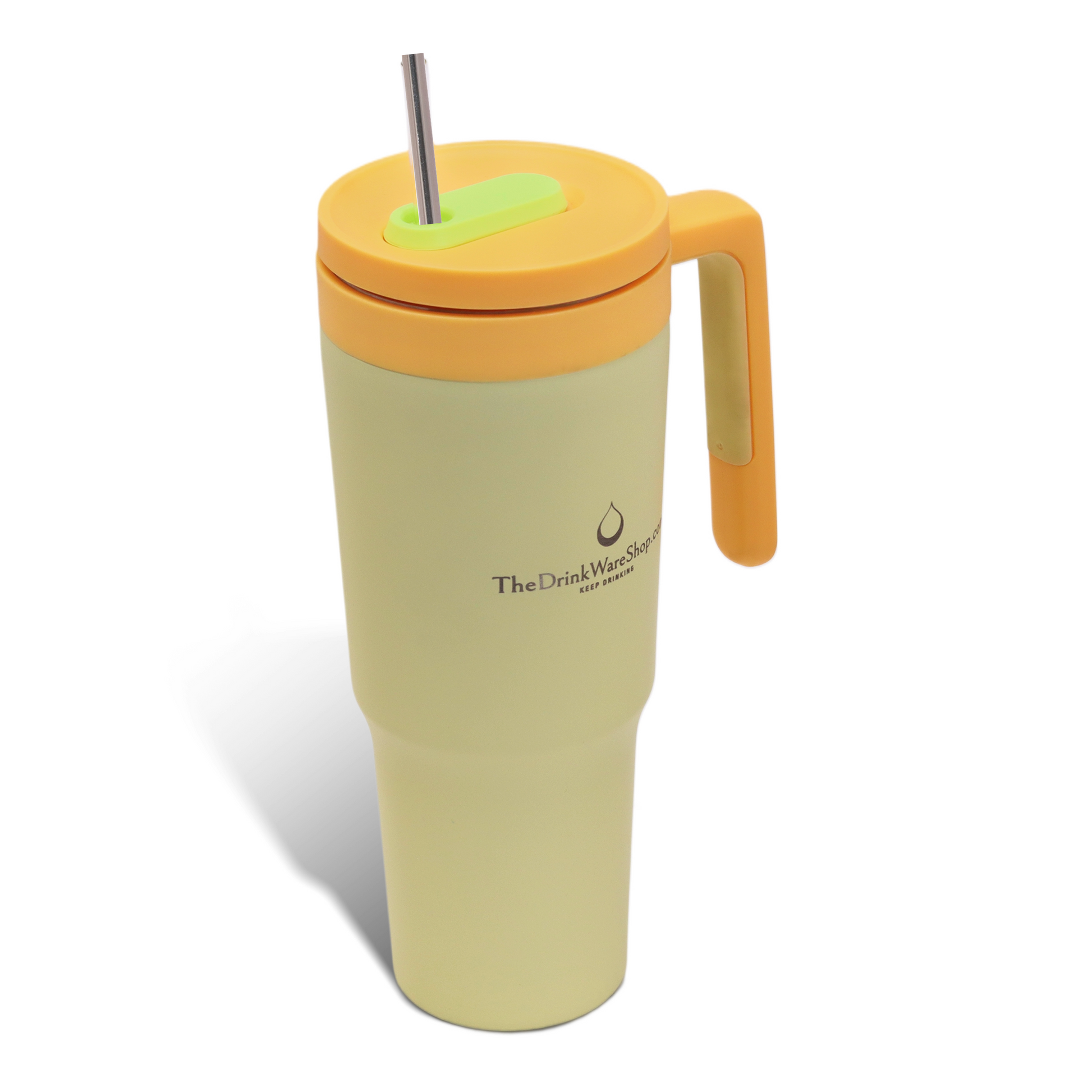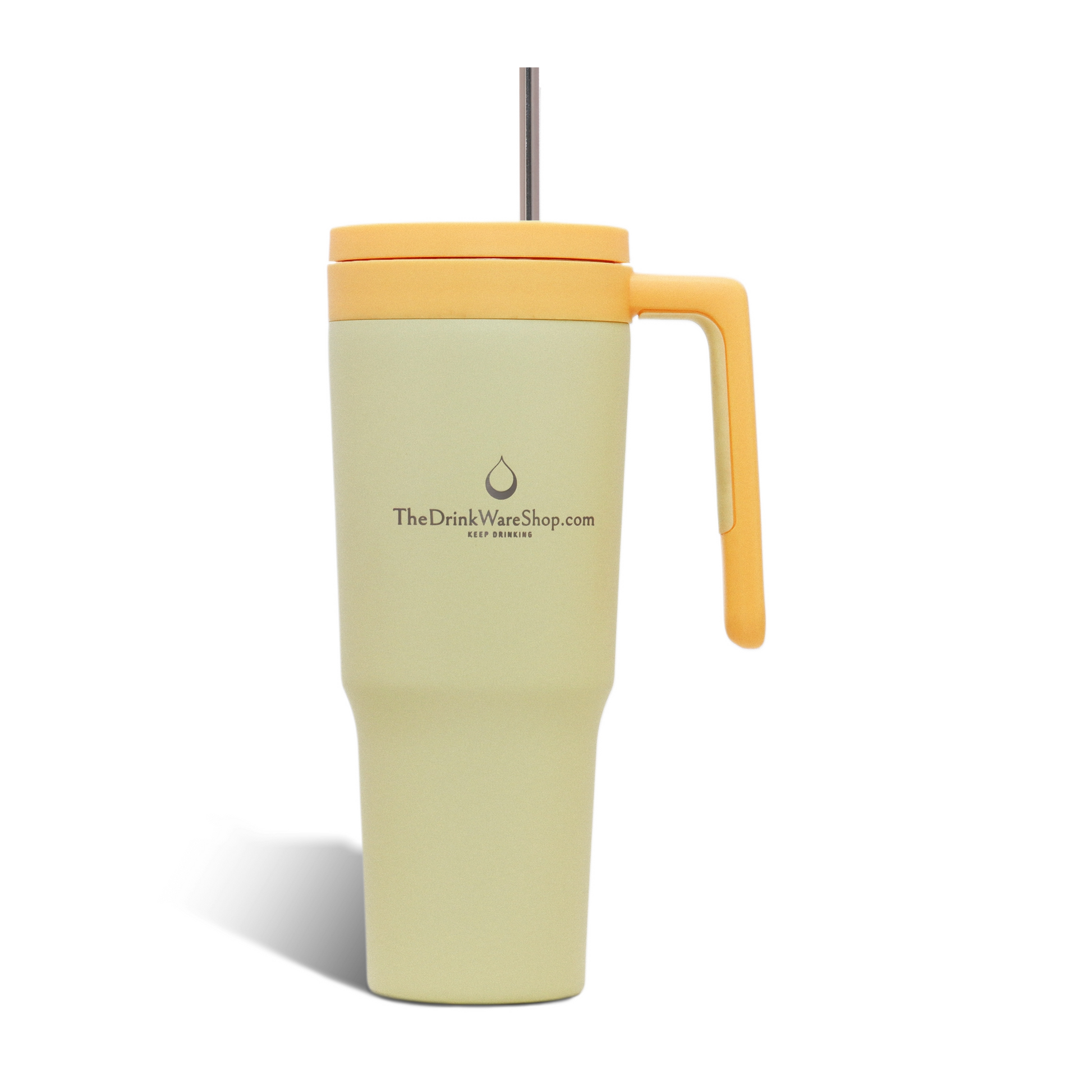 Trust us, this modern tumbler with handle, lid, and straw (plus straw cleaner!) is the perfect companion for your office, beach, or winter/summer adventures. While it's dishwasher safe, we recommend hand washing for optimal care. Get yours today and elevate your drink game to the next level!