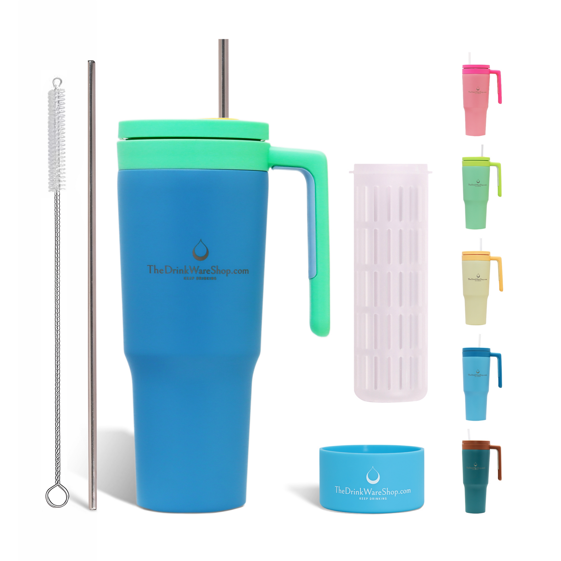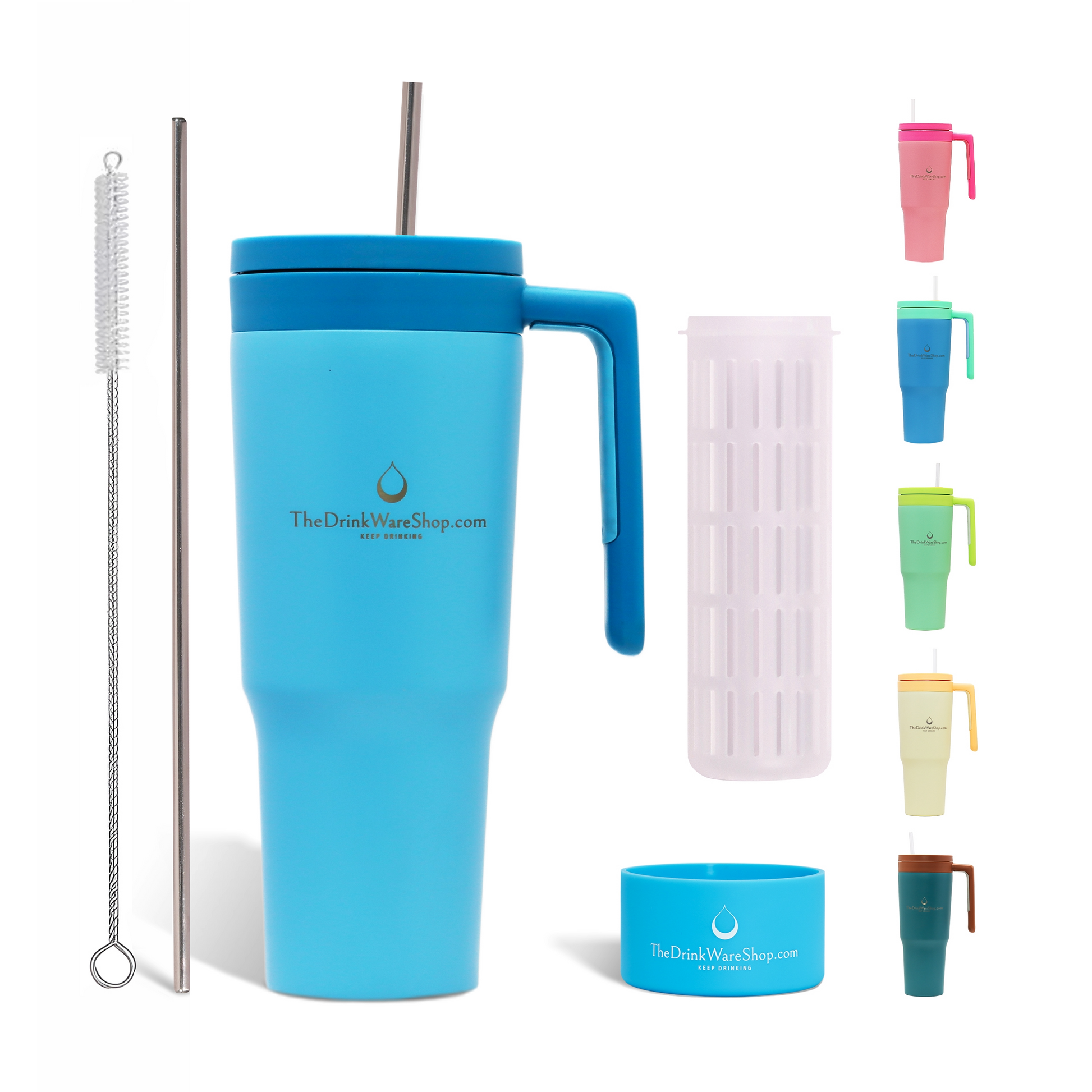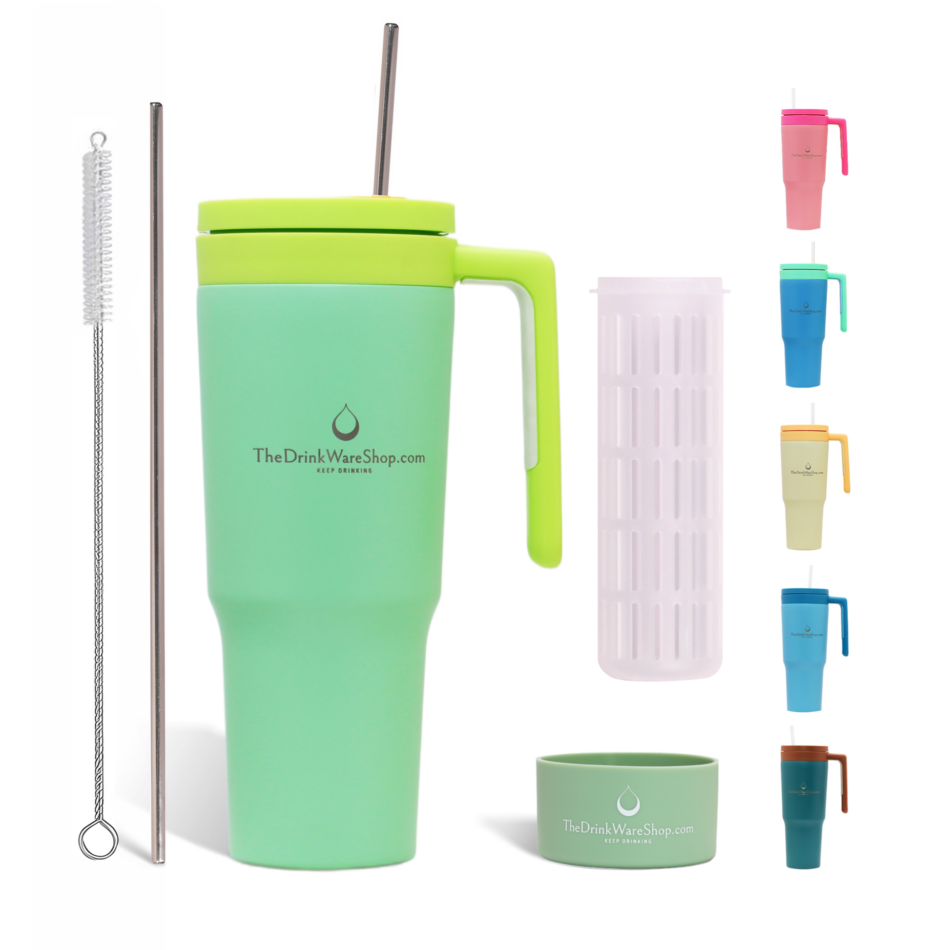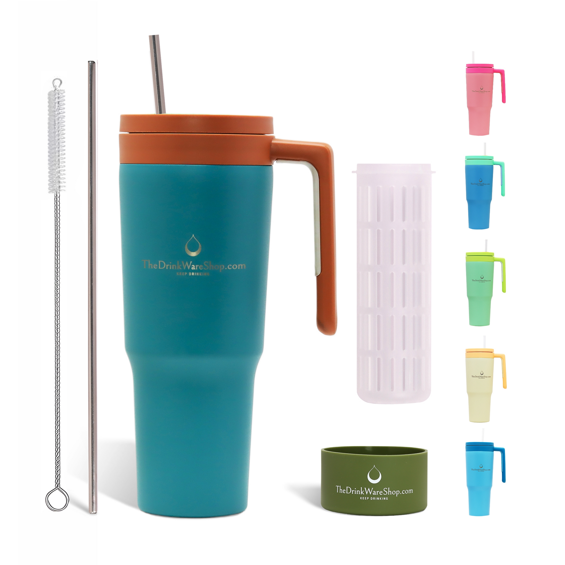 Trust us, this modern tumbler with handle, lid, and straw (plus straw cleaner!) is the perfect companion for your office, beach, or winter/summer adventures. While it's dishwasher safe, we recommend hand washing for optimal care. Get yours today and elevate your drink game to the next level!